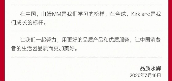 作为行业友商,品质永辉真诚希望和山姆MM携手践行:坚持为顾客开发更丰富、更美好的品质产品,共同抵制陷入低质竞争的泥潭。期待彼此不仅成为品质零售的引领者,更成为行业进步的推动者。