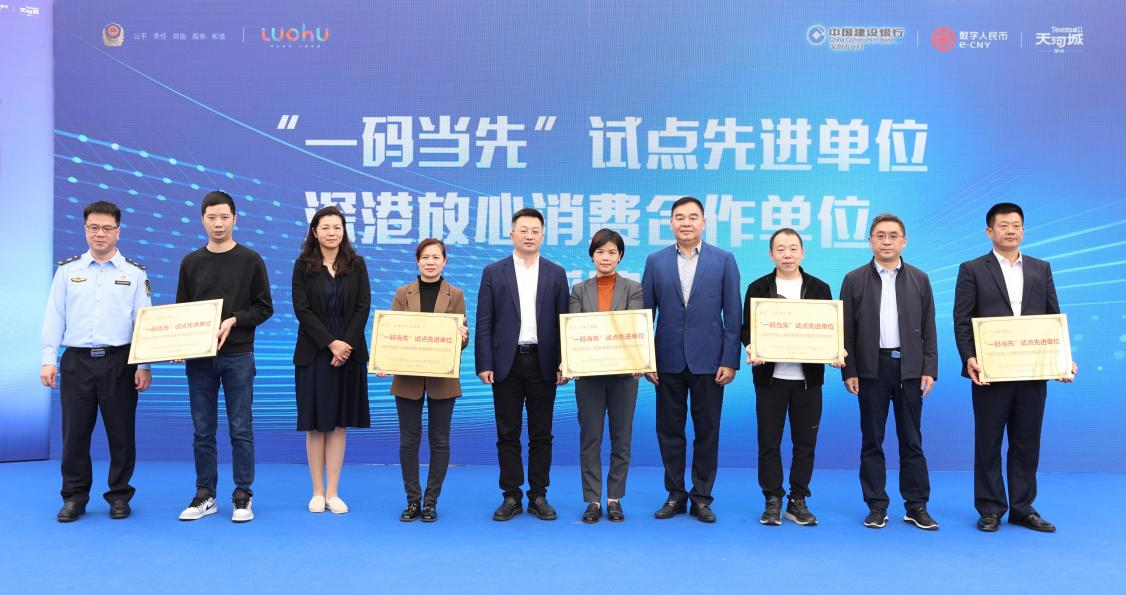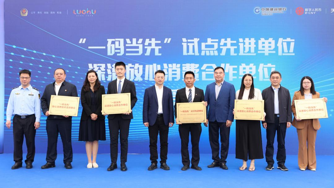 活动中,罗湖“一码当先”快速消费服务平台正式上线,与会领导为KKMALL、金光华等6个首批“一码当先”试点先进单位及香港国际调解中心、罗湖区赟恒调解中心、新家园社会服务中心、众信中心等4个深港放心消费合作单位授牌。