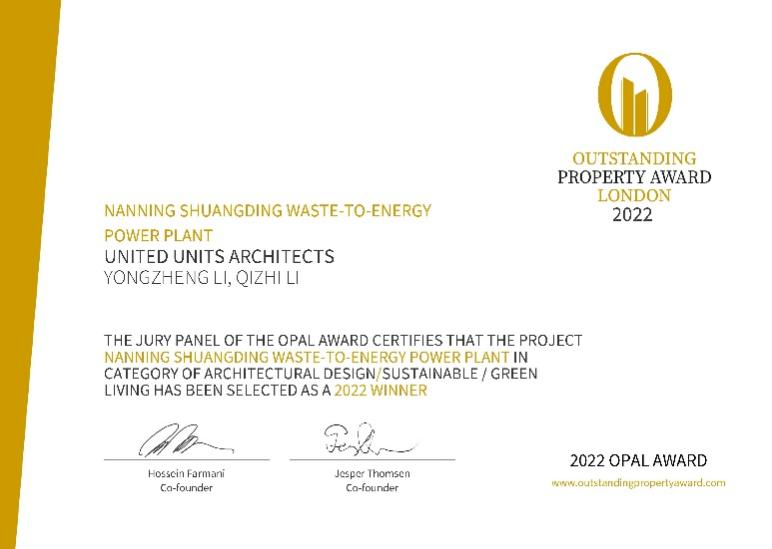 除三次荣获中国建设工程质量最高荣誉之一“鲁班奖”之外,康恒环境项目还先后荣获美国IDA国际设计奖、法国DNA设计大奖、英国OPAL伦敦杰出地产大奖、美国A+ Awards-、意大利A’Design Award等国际大奖,其中柳州项目更于2023年荣获BLT Built Design Awards建造设计奖工业建筑类优胜奖,成为全球首个获得该奖项的垃圾焚烧发电项目。