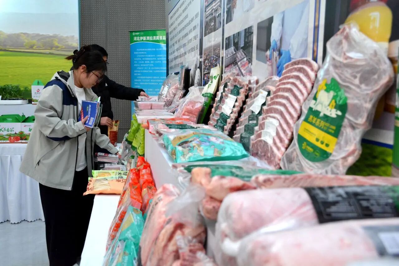 现场设置了丰富的产品展示与品鉴区,献县的特色农产品、加工食品吸引了众多采购商与市民驻足体验。31家参展企业的展品涵盖了畜禽产品、粮油、果蔬等多个品类。
